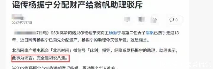 33. 幸而不久之后,杨振宁的助理出面澄清,指出目前并无任何官方渠道发布遗产分配的具体信息,相关言论纯属臆测,呼吁公众理性对待。